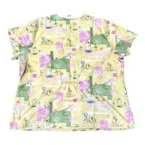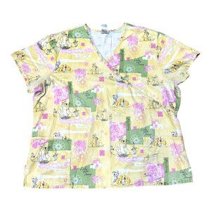 Disney Lady & The Tramp Scrub Top 2X Yellow Pink Green V-Neck Short Sleeve READ