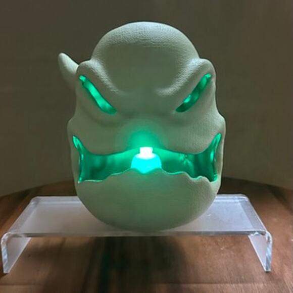 Shaped like Oogie Boogie's head with a flickering light effect