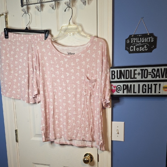 Disney Light Pink Sleepwear Short Sleeve Top Shorts XL Dots Pajamas