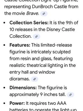 Merida from Disneys Brave.. Disney Castle Collection light up figurine .Collector series badge visible. This is #9 in a series of 10 Limited Edition collectibles. Ready for display for your Disney enthusiasts!