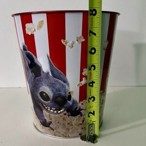 The Disney Lilo And Stitch Popcorn Bucket Tin is an exclusive movie collectible from the AMC Theaters partnership. Measuring 8x7 inches, this original piece is a must-have for fans of the beloved animated film. Made in China, this popcorn bucket tin is a unique and nostalgic item that captures the essence of the movie experience in a fun way. Perfect for collectors or fans of the Disney franchise, this item is a special piece of entertainment memorabilia.