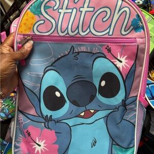 Adorable Stitch kids backpack in vibrant pink and blue. Perfect for school or travel.