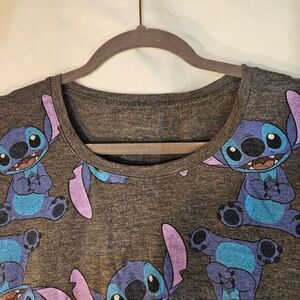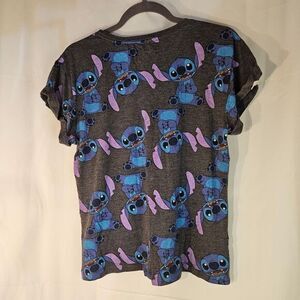 pr-owned, SKU I006. No tag attach. Unleash your inner ohana spirit with this charming Stitch-themed t-shirt that brings Disney magic to everyday wear. The heather gray background sets the perfect canvas for an adorable all-over print featuring the beloved alien troublemaker in his most expressive poses. Each Stitch illustration captures the character's signature mischievous charm with vibrant blue and purple hues that pop against the neutral backdrop. The comfortable crew neck design and classic t-shirt silhouette make this piece both practical and fun. Perfect for Disney theme park visits, casual weekend outings, or adding a playful touch to your loungewear collection.