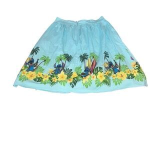 Good, preloved condition. Disney Lilo & Stitch Border Print Retro Circle Skirt Hawaiian Womens size XL. Disney bounding. Polynesian. Luau. Disney cruise. Aulani. The light blue skirt has a fitted waistband with back zipper closure and pockets! The hem is accented with a border print of Hawaiian flowers, palm trees, surf boards and the lovable, adorable Stitch in various poses.