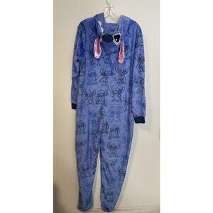 Disney Lilo & Stitch Pajama PJ Jumpsuit One Piece Sleepwar Adult XL Hood