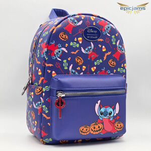 Disney Lilo & Stitch Red Devil Halloween Pumpkin Blue Mini Backpack Bag New