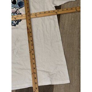 Crafted from 100% cotton, this white Disney T-shirt features an adorable Lilo & Stitch graphic. It's designed for comfort and style, perfect for showcasing your love for the iconic characters.