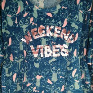 Disney Lilo and Stitch Pajama Top Shirt Women Size L 12 14 Blue Pink Long Sleeve