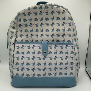 Stylish Stitch backpack featuring a unique blue and white pattern. Perfect for daily use and travel.