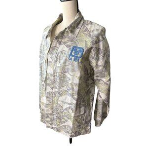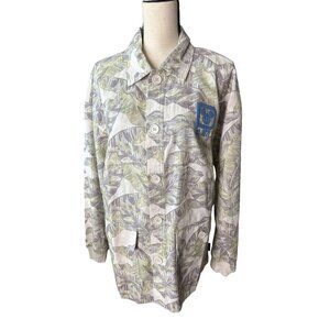 Disney Resort Linen Palms Jacket is a stylish safari button-front shacket in tan green. Ideal for women who love comfortable, versatile outerwear. Size Medium. Crafted with a blend of linen and cotton.