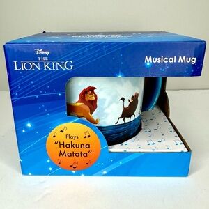 Disney Lion King Musical Coffee Mug. Plays Hakuna Matata when activated. Features Simba, Pumba and Timon. New in box