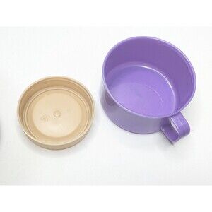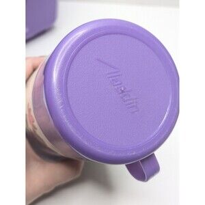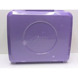 This Disney Lion King lunchbox and thermos set is made of durable plastic and manufactured in the USA. The set includes a lunchbox and thermos in purple with characters Simba and Nala featured. Perfect for collectors or fans of the Lion King franchise.