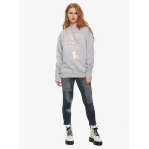 We can all learn from Mufasa's wise advice to Simba, "Remember who you are." No matter what happens, good or bad, you have it within yourself to overcome anything! Channel that positive energy when you wear this cozy, heather grey sweatshirt featuring Mufasa's signature line, and an outline of Simba as a cub.