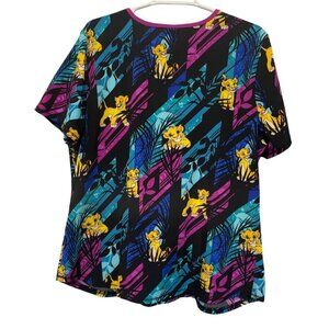 Disney Lion King Scrub Top L/G V-Neck Short Sleeve Black/Multicolor