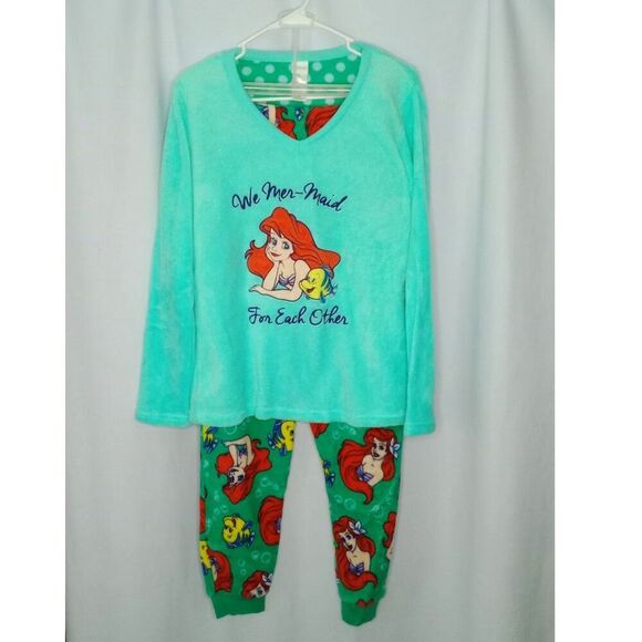 Disney Little Mermaid "We Mer-Maid For Each Other" PJs Set Intimates Flannel Loungewear