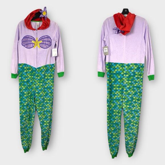 Disney Little Mermaid Ariel One Piece Pajamas Womens XS UnionSuit Hoodie