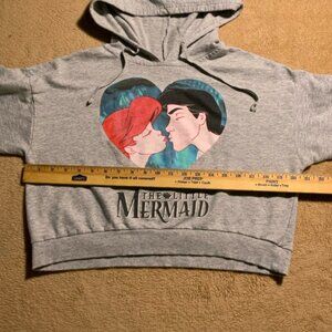 Disney Little Mermaid Women Medium Gray Cropped Pullover Hoodie Sweatshirt (G)