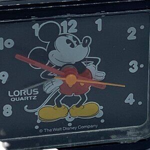 This vintage Disney Lorus Quartz Alarm Clock with Mickey Mouse design offers a nostalgic aesthetic combined with functionality. Compact and collectible.