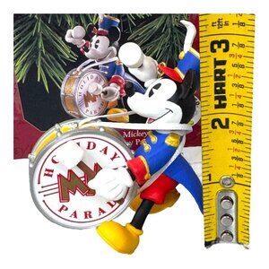 A nostalgic Disney collector's treasure that captures Mickey's timeless charm and holiday spirit. This meticulously crafted ornament showcases Mickey in a festive parade ensemble, complete with vintage-inspired clock details and playful posture. Perfect for Disney enthusiasts seeking a piece of magical memorabilia that sparks joy and memories.