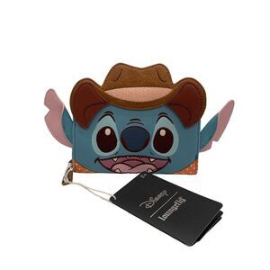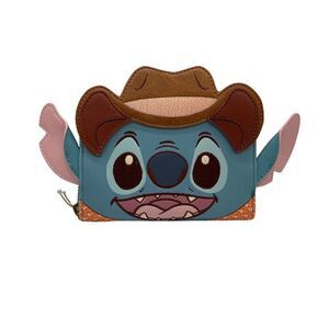 This Disney Loungefly wallet features an adorable Stitch in a cowboy hat, crafted with quality faux leather. Ideal for Disney fans.