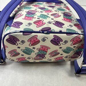 Disney Loungefly Mini Backpack Mad Tea Party Teacup Print Purple & Multicolor
