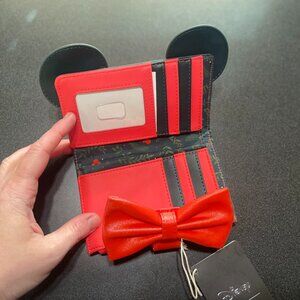 Celebrate the season in style with this Disney Loungefly Minnie Mouse Holiday Holly Berry set! This festive matching mini backpack and wallet features a rich green background with embroidered holly leaves and red berries, finished with bold red bows and Minnie ears. Perfect for Christmas, winter Disney trips, or holiday outfits.