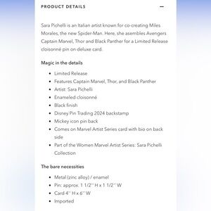 New Disney Marvel Artistic Series Limited Release Trading Pin