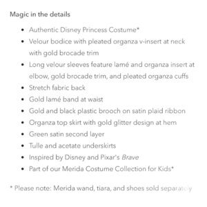 Disney MERIDA Deluxe Costume for Kids NWT Size 13