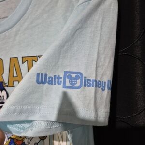 Light blue Disney T-shirt featuring Mickey Mouse and friends celebrating Hanukkah.