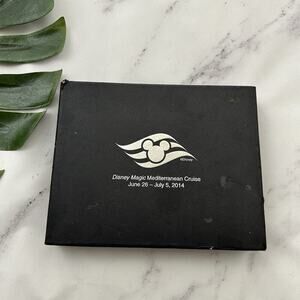 Disney Cruise Line 'Disney Magic' Mediterranean cruise glass cutting board and cheese knife set. There is some wear to the box, please see pictures. The board measures about 9 inches by 7 inches.