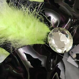 Stylish black and green bow featuring an interchangeable design. Perfect for adding a unique touch to any outfit.