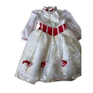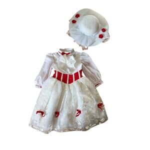 Disney Mary Poppins costume white dres with red roses and matching hat size 3. Hat has some wear please see all photos. Otherwise in GUC. Halloween dress up