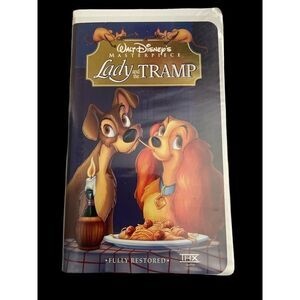 This is a Disney Masterpiece Collection VHS tape of the classic movie "Lady and the Tramp". It is a great addition to any movie collection with its NTSC signal standard, English language, G rating and fun animation for the whole family to enjoy.