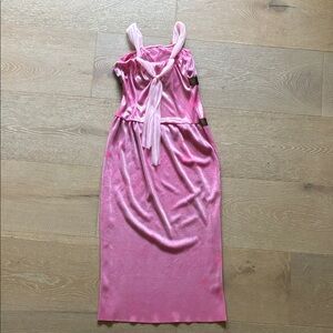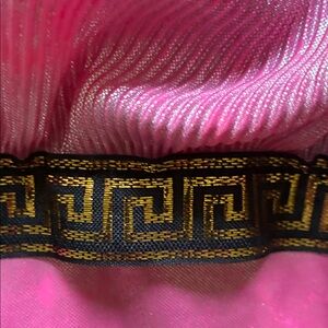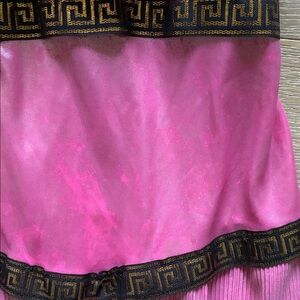 Elegant pink sleeveless maxi dress with gold accents. Perfect for special occasions.