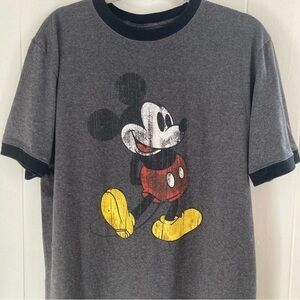 Disney Mens Mickey Mouse Distressed Graphic Wash Gray Shirt Med
