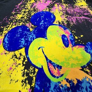 Disney Men's Retro Mickey Mouse Bright Neon Paint Splash Shirt Black Large Tee