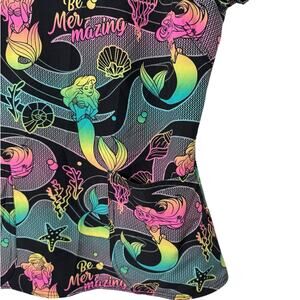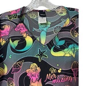 Disney Mer-mazing Ariel Little Mermaid Women's 2-Pocket STRETCH V-Neck Scrub Top