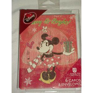 Disney Merry & Bright Christmas Holiday Cards Set 6 Minnie Mouse Gifts Greeting. Measures approximately 5" X 4"
