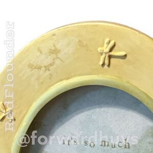 • The front oval area has a lighter spot due to the removal of a price tag; this area has been cleaned but remains slightly tacky from adhesive.