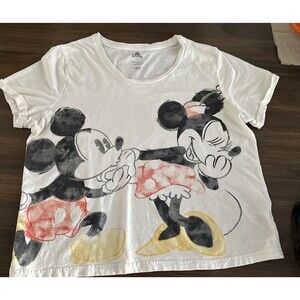This is a Disney Mickey and Minnie T-shirt in size M, suitable for adult women. The shirt features a white color with a Mickey Mouse theme. It is a contemporary Disney collectible from the Disney franchise.