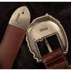 Disney Mickey & Co By Brighton Brown Statement Belt Silver Mickey Train Buckle