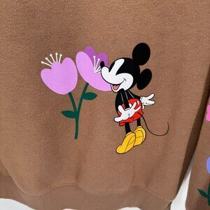 Disney Mickey Crew Neck Sweatshirt Tan With Floral Graphics Womens M