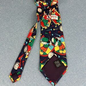 Disney Mickey Inc Silk Vintage Goofy Donald Duck Golf Print Tie