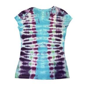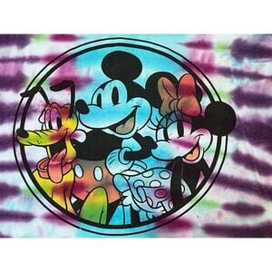 Disney Mickey Minnie Custom Tie Dye Fitted T-Shirt Purple Teal Size Med Hippie