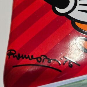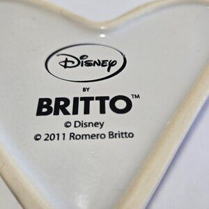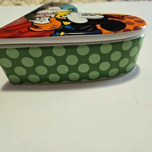 Disney Mickey & Minnie Heart Shaped Trinket Box by Romero Britto. Beautiful little heart shaped ceramic trinket box with the Mickey & Minnie lovebirds featured. Bold colors and patterns. Removeable top, excellent condition. Approximately 5" across at the widest pint and about 2" high.