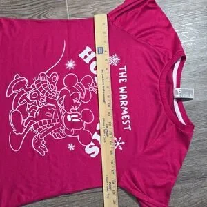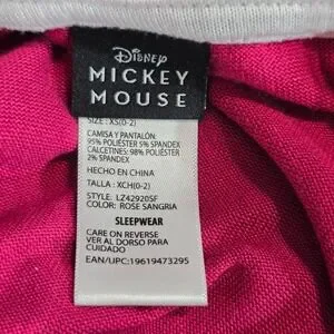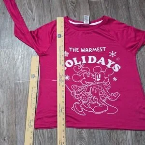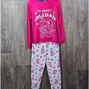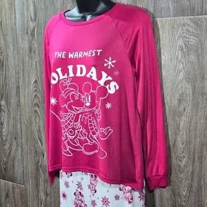 Disney Mickey Minnie Holiday Pajama Set XS Rose Sangria Raglan Sleepwear