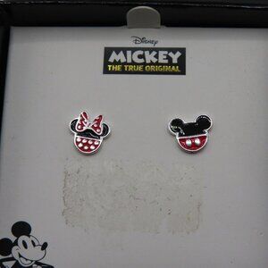 Disney Mickey Minnie Mouse 90 Years Fine Silver Plated Stud Earrings NEW NIB