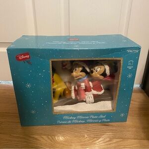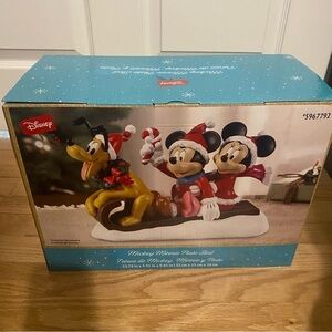 Disney Mickey Minnie Mouse Christmas Sleigh Decoration Statue Pluto Resin NEW