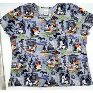 Disney Mickey Minnie Mouse Halloween Scrub Top Front Pockets Sz 2X/2XG Mansion