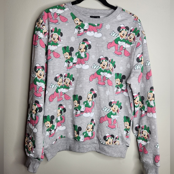 Disney Mickey & Minnie Mouse Ice Skating In Snow Sweatshirt